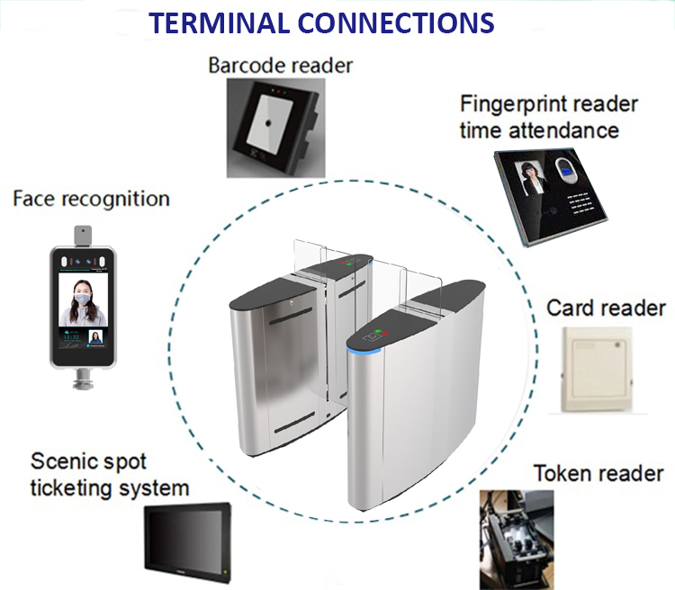 10. Swing barrier is with standard electrical interface for the integration of various readers and writers.